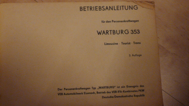 Betriebsanleitung Wartburg 353W, Limousine/ Tourist/ Trans