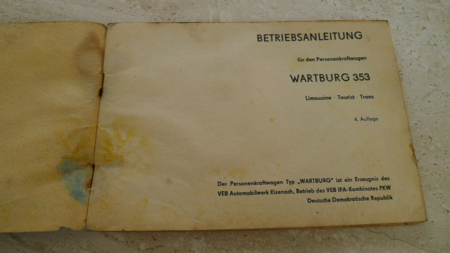 Betriebsanleitung Wartburg 353W, Limousine/ Tourist/ Trans