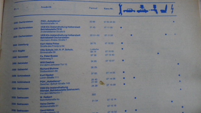 und Angabe von Vertragswerkstätten zu DDR-Zeiten