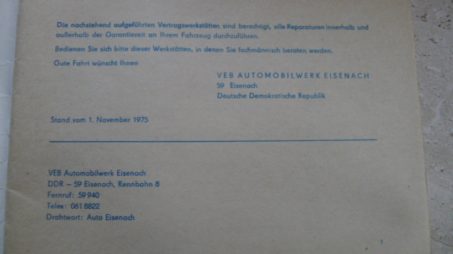 Service-Heft mit Angabe von Vertragswerkstätten zu DDR-Zeiten