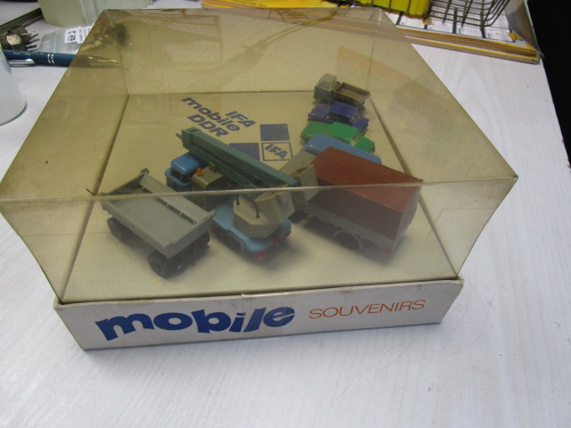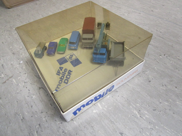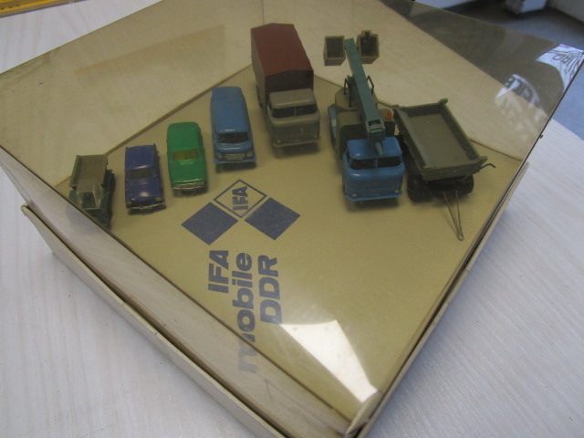 Box mit Multicar, Trabant, Wartburg, Barkas, W 50 und Anhänger